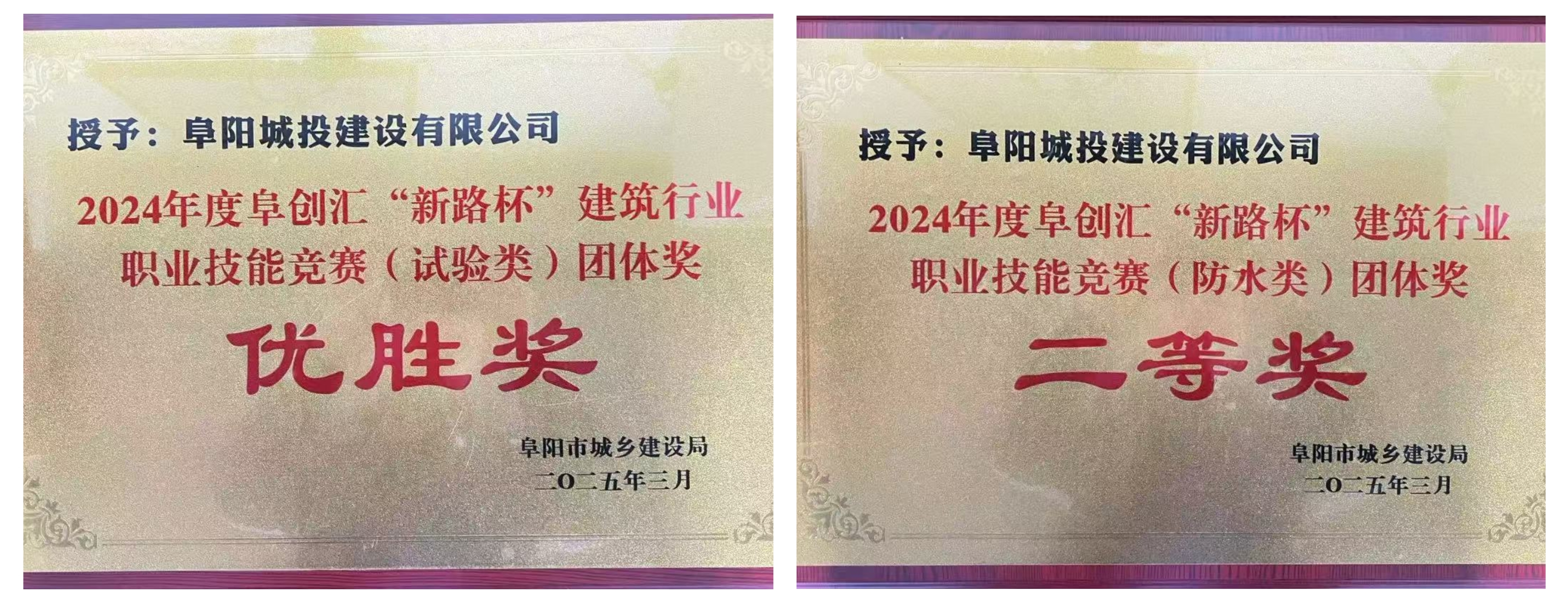 會議還宣布了2024年阜創(chuàng)匯“新路杯”建筑行業(yè)職業(yè)技能競賽結果。來自城建公司的5名選手分別獲得防水類二等獎,砌筑類、防水類三等獎,實驗員優(yōu)勝獎,城建公司獲得大賽突出貢獻獎,(防水類)團體獎二等獎,(砌筑類,鋼筋類)團體獎三等獎,(實驗員)團體獎優(yōu)勝獎。